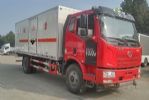 該車適用于運輸危險品。選裝右側(cè)箱體不開門, 選裝側(cè)門型式及位置, 廂體頂部封閉, 不可開啟。危險貨物運輸車輛的類型。選裝后部液壓尾板, 廂體顏色可變化, 文字噴涂位置可變化。后部液壓尾板收起狀態(tài)長度是250mm。安裝限速裝置, 限速79km/h。該車安裝帶有衛(wèi)星定位功能的行駛記錄儀。僅采用前盤制動器和安裝ABS的底盤。排氣管前置。僅采用子午線輪胎。ABS系統(tǒng)生產(chǎn)廠家:長春科密汽車制動有限公司, 型號:CM4XL.運輸介質(zhì):單獨包裝的氨溶液(氨水)或甲醛溶液或除銹磷化液(除銹磷化處理劑)或電池, 電池液或木餾油。類項號:8類。側(cè)防護和后防護裝置材料材質(zhì)為Q235A碳鋼, 側(cè)防護與箱體底部焊接連接, 后防護裝置與車架采用焊接連接。后防護截面尺寸(mm):145×50, 離地高度為530mm。發(fā)動機CA4DK1-18E51, CA4DK1-22E51分別對應(yīng)的油耗值為:27.42, 27.42。當(dāng)整車長度為8680mm時, 軸距4700mm, 5000mm, 5300mm與后懸2580mm, 2280mm, 1980mm一一對應(yīng)。
