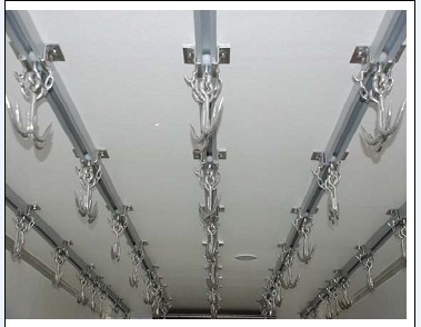 冷藏車由專用汽車底盤的行走部分,與隔熱保溫廂體(一般由聚氨酯材料、玻璃鋼組成,彩鋼板,不銹鋼等),制冷機組,車廂內溫度記錄儀等部件組成,對于特殊要求的車輛,如肉鉤車,可加裝肉鉤,攔腰,鋁合金導軌,通風槽等選裝件。
