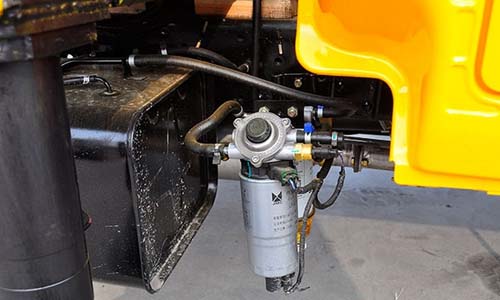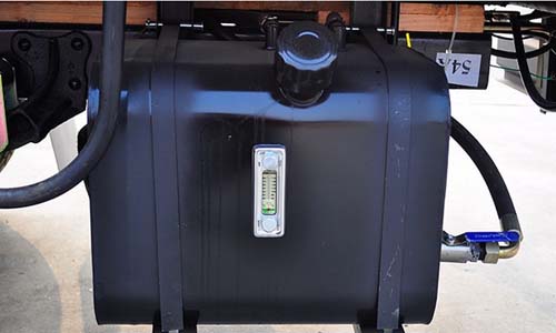 液壓油箱加裝在車輛一側(cè),為上裝液壓部件工作提供了足夠的原動力,油箱上還有一個溫度顯示儀,標(biāo)有攝氏度和華氏度兩種顯示刻度,方便用戶掌握情況。
