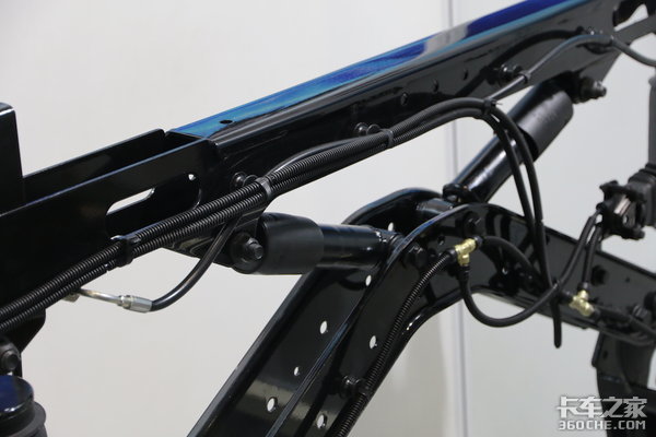 而在駕駛室后側(cè)的懸架模塊上,還有兩個(gè)橫向的減震器,它們可以在車輛轉(zhuǎn)彎時(shí)減少駕駛室的側(cè)傾,讓駕駛室內(nèi)更加平穩(wěn)。
