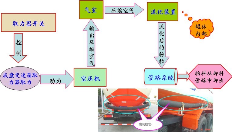 2、湖北程力粉粒物料運(yùn)輸車(散裝水泥車)的卸料過程流程圖: